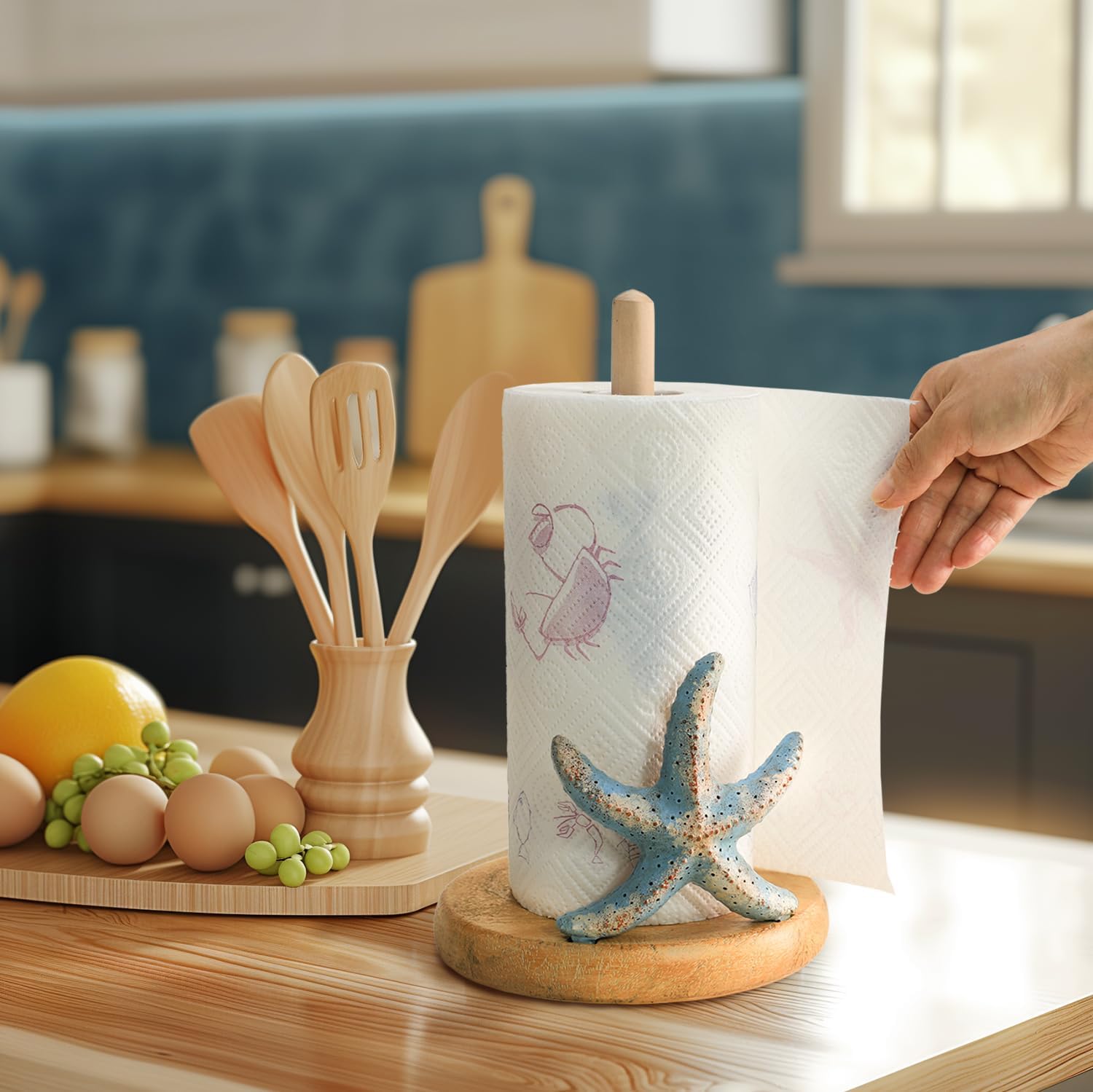 Bicuzat Retro Starfish Style Paper Towel Holder Stand, Resin Starfish Crafts Display for Kitchen Countertop, Cafe Western Restaurant Cake Shop Dessert Shop